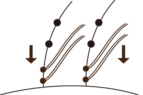 増毛エクステの種類、本数をお選びいただきます。髪の毛一本一本に日本製ファイバー毛を丁寧に結んでいきます。